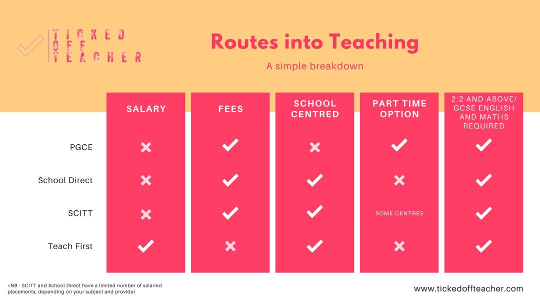 The UK is facing a teacher recruitment and retention crisis. We desperately need more teachers and need to make the options available clearer and more accessible. Everyone in teaching has an opinion of different routes of ITT and more often than not you’ll hear the horror stories, rather than the majority of successful teachers that train every year. I hope this guide highlights some of the major similarities and differences and that you’re able to cast aside the horror story you hear about your aunty’s neighbour’s neice’s friend who hated their [insert ITT name here].